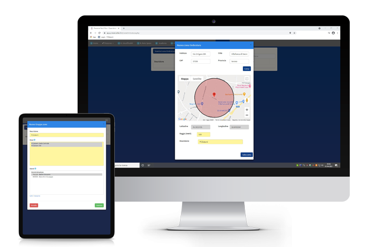Il dipendente abilitato alla timbratura online con geolocalizzazione OBBLIGATORIA, può essere assegnato dall'amministratore ad una zona timbratura e registrare la presenza.